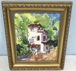Watercolor on board "Interlakin", framed 13"h., 11"w., signed Priscilla Krejci. Watercolor on board "Interlakin", framed 13"h., 11"w., signed Priscilla Krejci.