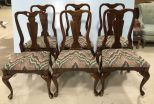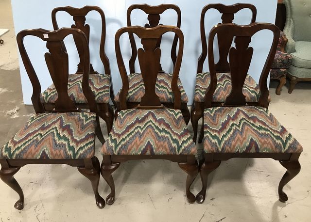 Five cherry Queen Anne style dining chairs, upholstered seats, side chairs, 38"h. Five cherry Queen Anne style dining chairs, upholstered seats, side chairs, 38"h.