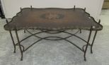 Metal bark design frame with painted board top to look like leather, 20"h., 48"w., 26"d. Metal bark design frame with painted board top to look like leather, 20"h., 48"w., 26"d.