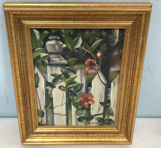 593 Becky Barnett Painting of Flowers on Fence