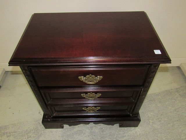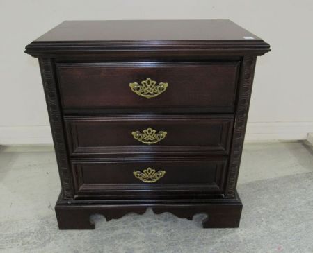 Modern three drawer cherry night stand, Chippendale style, 28"h., 27"w., 16"d. Modern three drawer cherry night stand, Chippendale style, 28"h., 27"w., 16"d.
