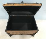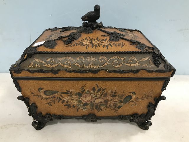 Modern ornate resin footed box with bird emblem finial on top, lift top trinket box, 14"w., 10"d., 14"h. Modern ornate resin footed box with bird emblem finial on top, lift top trinket box, 14"w., 10"d., 14"h.