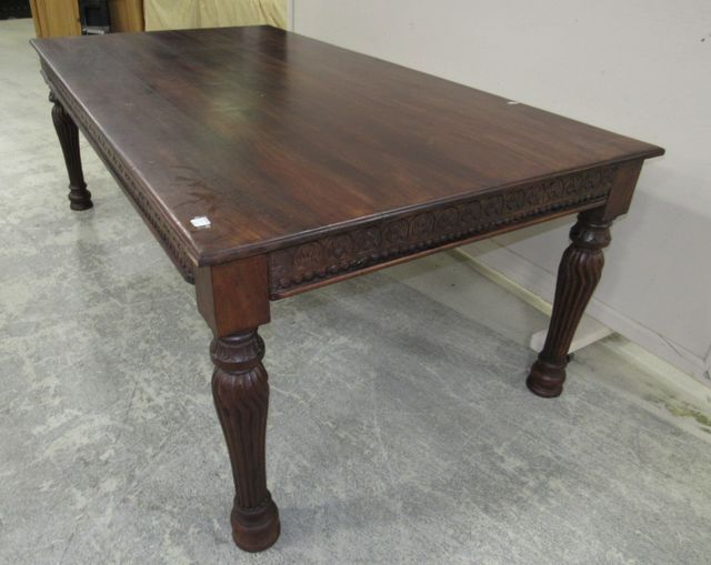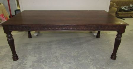 One piece Indonesian dining table with carved border trim, 30"h., 84"w., 44"d. One piece Indonesian dining table with carved border trim, 30"h., 84"w., 44"d.