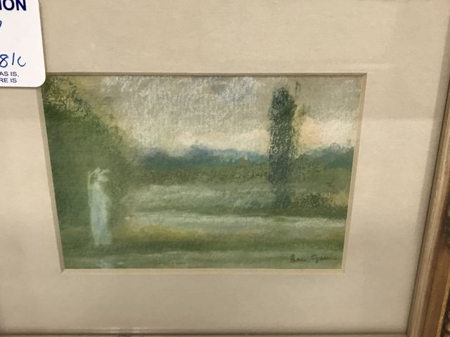 Pastel painting by Les Green., framed 8"h., 9"w. Pastel painting by Les Green., framed 8"h., 9"w.