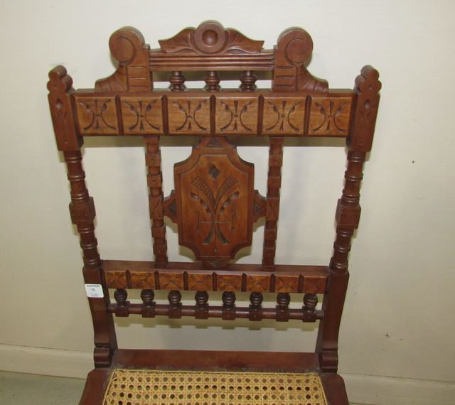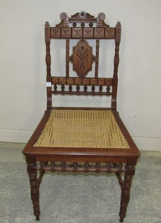 Carved Eastlake style cane bottom side chair, seat needs work and back needs tightening, 36"h. Carved Eastlake style cane bottom side chair, seat needs work and back needs tightening, 36"h.