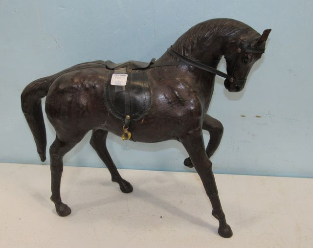 Decorative black paper mache horse, 16"h., 17"w. Decorative black paper mache horse, 16"h., 17"w.