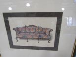 Framed, matted, reprints of 1905 artwork by Shirley, Arm chair, marble console, sofa., 17"h., 21"w. Framed, matted, reprints of 1905 artwork by Shirley, Arm chair, marble console, sofa., 17"h., 21"w.