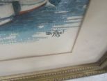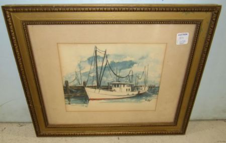 Framed watercolor of ship in harbor signed, 1973, 14"h., 17"w. Framed watercolor of ship in harbor signed, 1973, 14"h., 17"w.