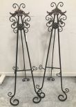 Pair of art metal art easel with antique gold crest work, 62"h. Pair of art metal art easel with antique gold crest work, 62"h.