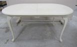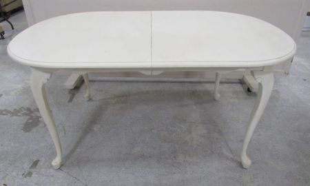 Painted white oval dining table, one leaf is painted white, other is natural finish, 30"h., 61"w., 41"d. Painted white oval dining table, one leaf is painted white, other is natural finish, 30"h., 61"w., 41"d.