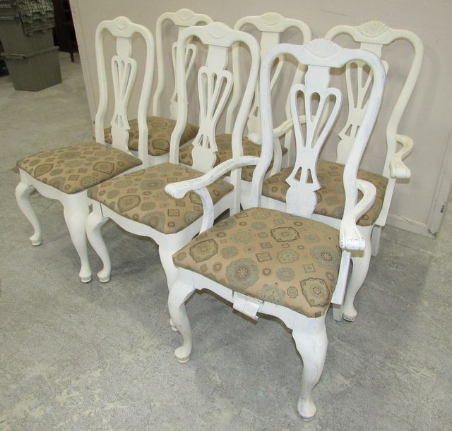 883 Six White Chalk Painted Queen Anne Style Dining Chairs