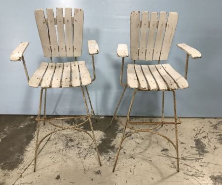 Painted white seat with rustic metal frame, 33"h. Painted white seat with rustic metal frame, 33"h.