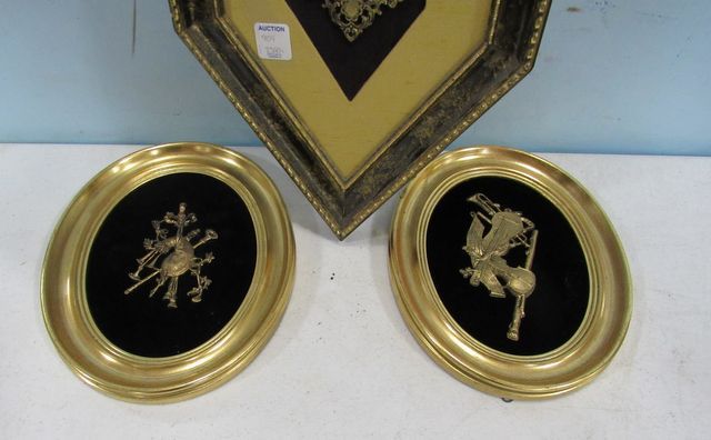 Classical framed wall decor 26"h., pair of oval gold framed music decor 10"h. Classical framed wall decor 26"h., pair of oval gold framed music decor 10"h.