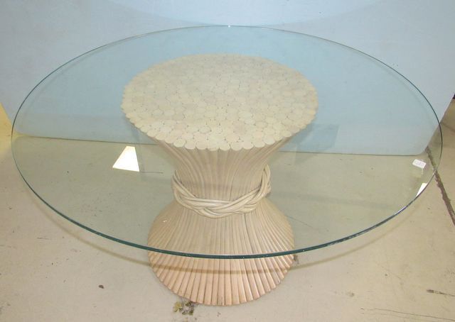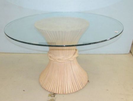 Round glass top dining table with bamboo style pedestal base, 29"h., 48"dia. Round glass top dining table with bamboo style pedestal base, 29"h., 48"dia.