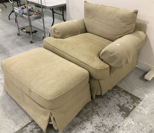 Large Thomasville upholstered arm chair, 36"h., 49"w., 41"d. Large Thomasville upholstered arm chair, 36"h., 49"w., 41"d.