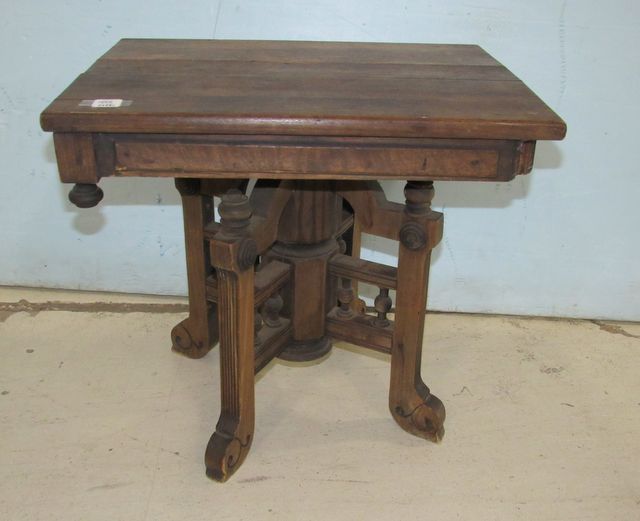 Needs tightening, Eastlake style small lamp table, missing border finial, 17"h., 19"L., 15"w. Needs tightening, Eastlake style small lamp table, missing border finial, 17"h., 19"L., 15"w.
