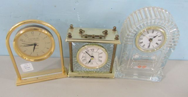 Danbury gold color shelf clock, Pressed glass Danbury shelf clock, PS small carriage clock. battery powered. Danbury gold color shelf clock, Pressed glass Danbury shelf clock, PS small carriage clock. battery powered.