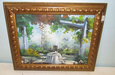 Painting on canvas, unsigned, framed, 16"h., 19"w. Painting on canvas, unsigned, framed, 16"h., 19"w.