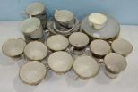 6 Alvin fine china tea cups, 4 Gorham tea cups, Mikasa cups and saucers, Flintridge china saucers. "Bluebell Time" Aynsley cup, 6 Alvin fine china tea cups, 4 Gorham tea cups, Mikasa cups and saucers, Flintridge china saucers. "Bluebell Time" Aynsley cup,
