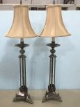 Pair of distressed metal table lamps, 36"h. Pair of distressed metal table lamps, 36"h.