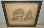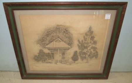 Signed Abbott 1975, print of home in Convington, LA, 18"h., 22"w. Signed Abbott 1975, print of home in Convington, LA, 18"h., 22"w.