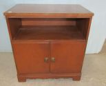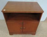 Illuminate wood top, two door storage, has some wear, lion head pulls, 30"h., 28"w., 17"d.` Illuminate wood top, two door storage, has some wear, lion head pulls, 30"h., 28"w., 17"d.`