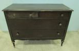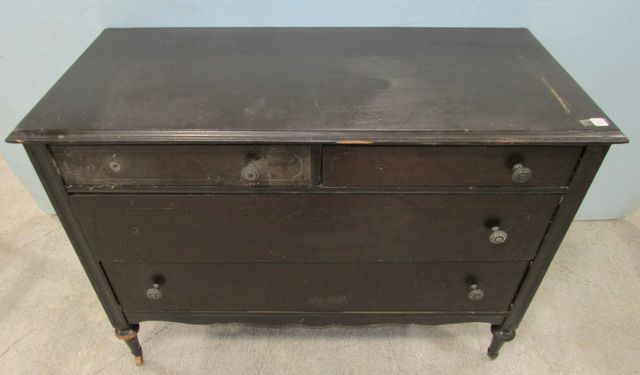 Painted four drawer dresser, has chew mark on front leg, both top drawers have been glued, 34"h., 46"w., 20"d. Painted four drawer dresser, has chew mark on front leg, both top drawers have been glued, 34"h., 46"w., 20"d.