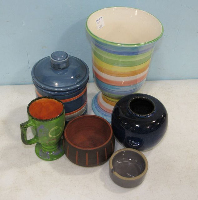 Gail Pittman UMC Vase 9"h., Italian pottery container, Mustard Seed Web Guthrie cup, pottery ashtray, blue vase, hand made vase. Gail Pittman UMC Vase 9"h., Italian pottery container, Mustard Seed Web Guthrie cup, pottery ashtray, blue vase, hand made vase.