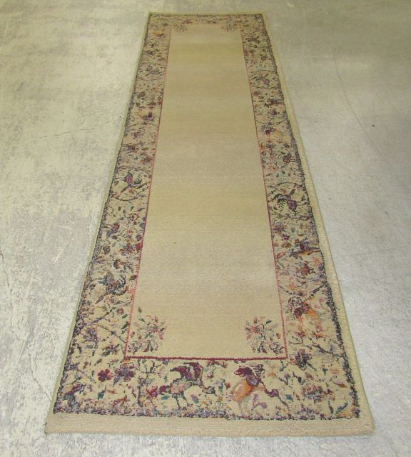 Fantasy collection ivory 2'3 x 7'9 runner, needs cleaning. Fantasy collection ivory 2'3 x 7'9 runner, needs cleaning.
