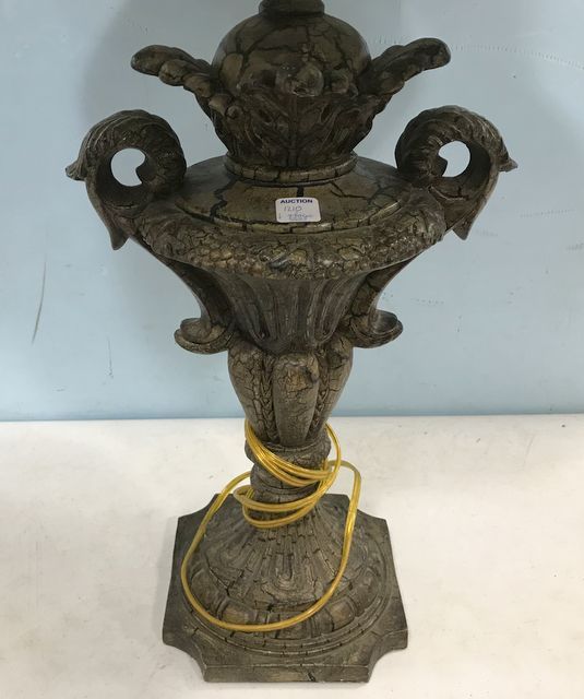 Distressed age crackle resin urn table lamp, 36"h. Distressed age crackle resin urn table lamp, 36"h.