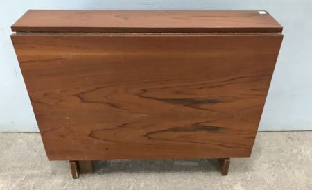 Mission style double gate leg drop leaf table, light burl wood finish, has some worn spots, 29"h., 34"w. Mission style double gate leg drop leaf table, light burl wood finish, has some worn spots, 29"h., 34"w.