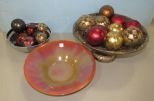 Towle silver plate bowl with decorative balls, Resin mosaic design pedestal compote with decorative balls, pottery hat bowl 4"h., 15"dia. Towle silver plate bowl with decorative balls, Resin mosaic design pedestal compote with decorative balls, pottery hat bowl 4"h., 15"dia.