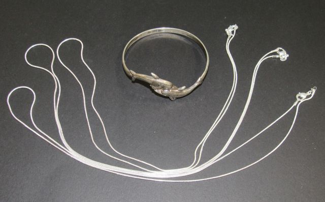 330 Sterling Bangle Bracelet with Dolphins and Three Sterling Chains