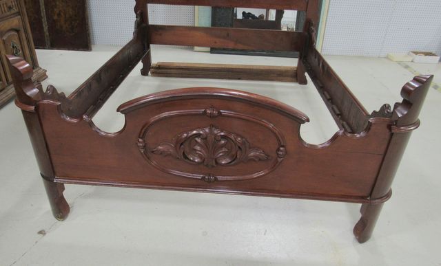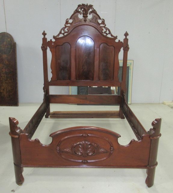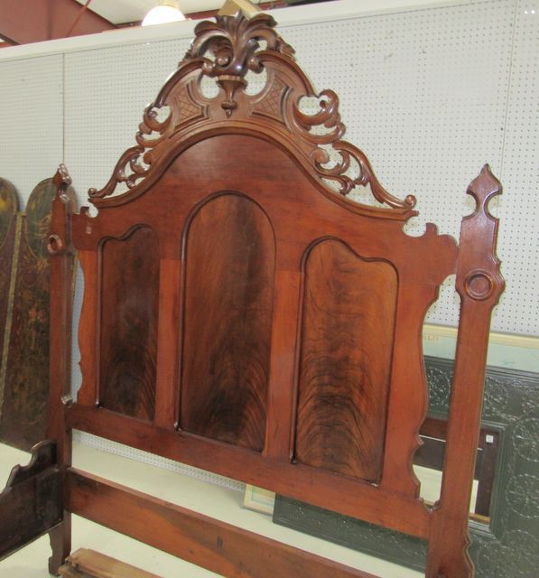Carved crest, sturdy, Mahogany, three back panel design, 82"h., 55"w. Carved crest, sturdy, Mahogany, three back panel design, 82"h., 55"w.
