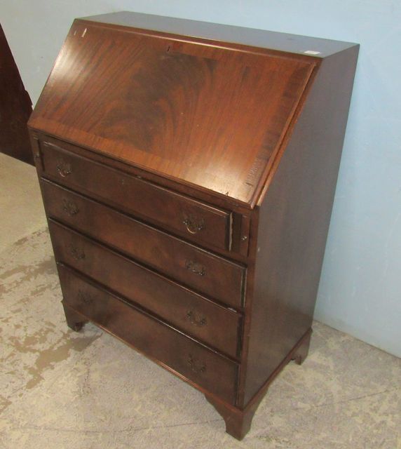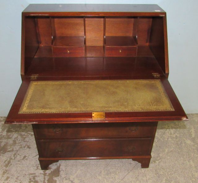 Four drawers, leather inset, divided sections, has some finish wear, 39"h., 29"w. Four drawers, leather inset, divided sections, has some finish wear, 39"h., 29"w.