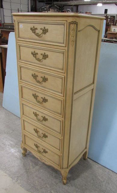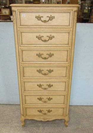 Seven drawers, factory painted and distressed, 55"h., 23"w. Seven drawers, factory painted and distressed, 55"h., 23"w.