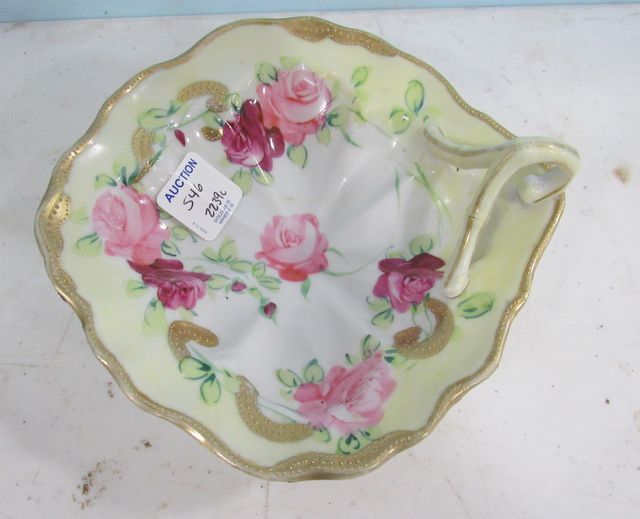 Rose pattern, gold embossed, handled, 7"w. Rose pattern, gold embossed, handled, 7"w.