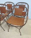 557 Four Leather Woven Metal Arm Chairs