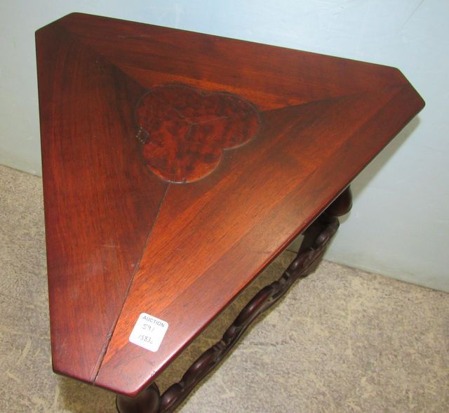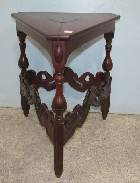 American walnut, ornate carved stretchers, clover shape medallion, 25"h., 17 1/2"w. American walnut, ornate carved stretchers, clover shape medallion, 25"h., 17 1/2"w.
