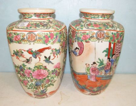 Porcelain, floral pattern, modern pieces, 12"h. Porcelain, floral pattern, modern pieces, 12"h.