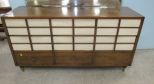 Mirror back, painted drawer panels, 30"h., 60"w. Mirror back, painted drawer panels, 30"h., 60"w.