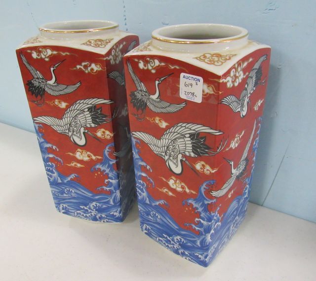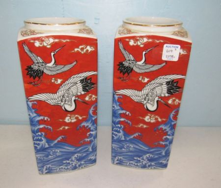 Hand painted swans and water, 12"h. Hand painted swans and water, 12"h.