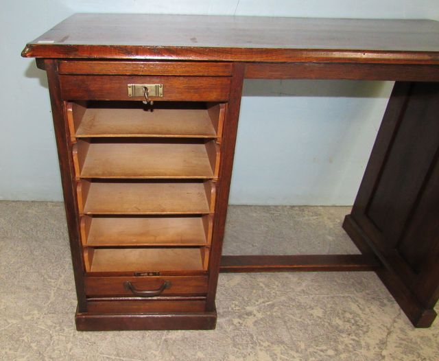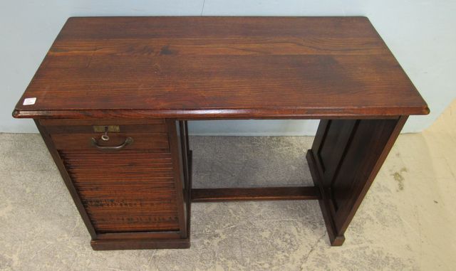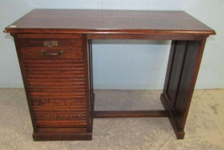 Has key with roll down file storage, 28"h., 39"w. Has key with roll down file storage, 28"h., 39"w.