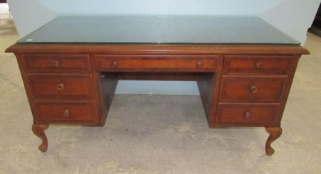 Glass top, inlaid trim design, 30"h., 65"w. Glass top, inlaid trim design, 30"h., 65"w.