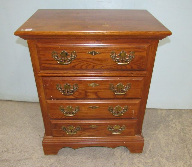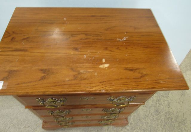 Has wear marks, brass pulls, bracket feet design, 31"h., 25"w. Has wear marks, brass pulls, bracket feet design, 31"h., 25"w.