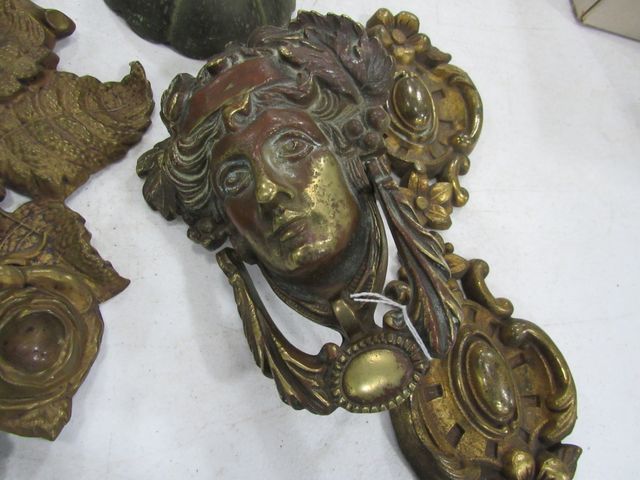 brass door knocker, ornaments, 8 pieces. brass door knocker, ornaments, 8 pieces.