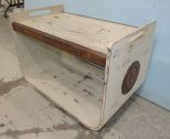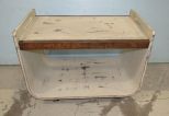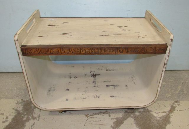 Distressed painted, on wheels, 19"h., 28"w. Distressed painted, on wheels, 19"h., 28"w.