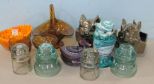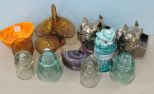 Glass insulators, art glass owl and duck, ceramic elephants, amber depression style glass, hand painted art bowl. Glass insulators, art glass owl and duck, ceramic elephants, amber depression style glass, hand painted art bowl.