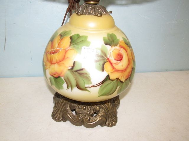 no shade, flower painted, 14"h. no shade, flower painted, 14"h.