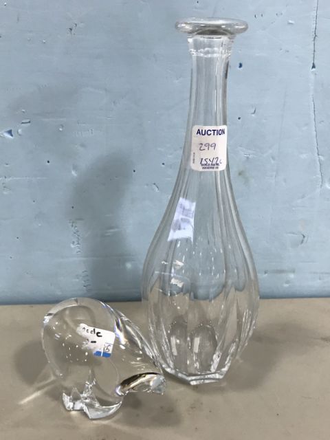 Baccarat Glass Decanter, missing stopper, 9"h. and Spode Glass Paper Weight, 2 1/2"h., 3"w. Baccarat Glass Decanter, missing stopper, 9"h. and Spode Glass Paper Weight, 2 1/2"h., 3"w.